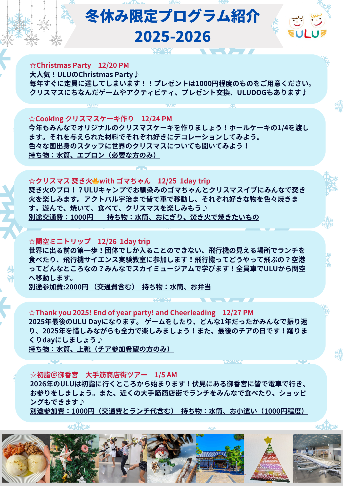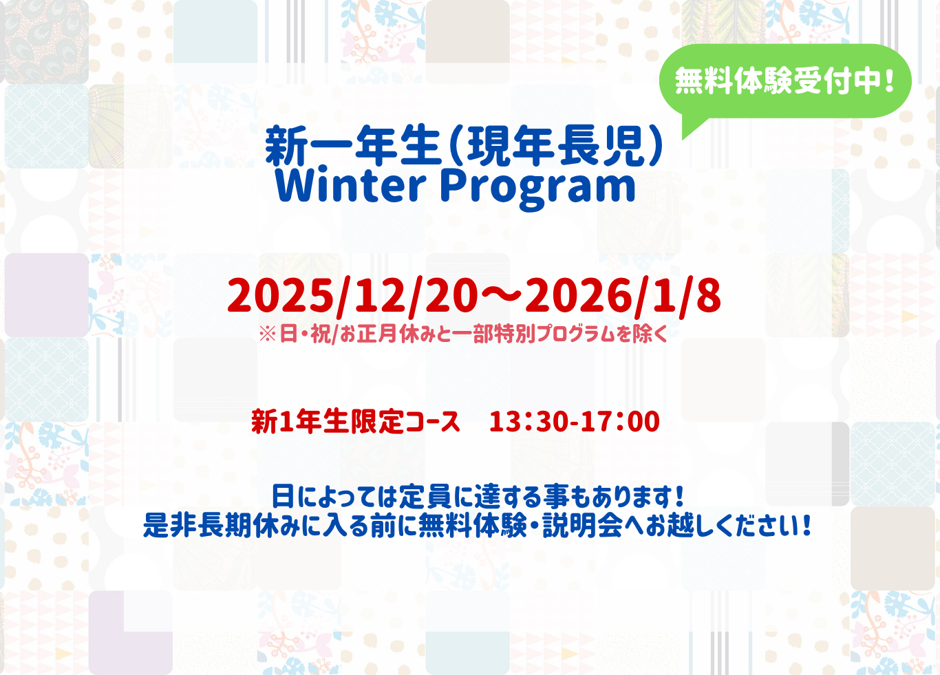 Winter Program 2025@東寺教室 お申し込みはこちら